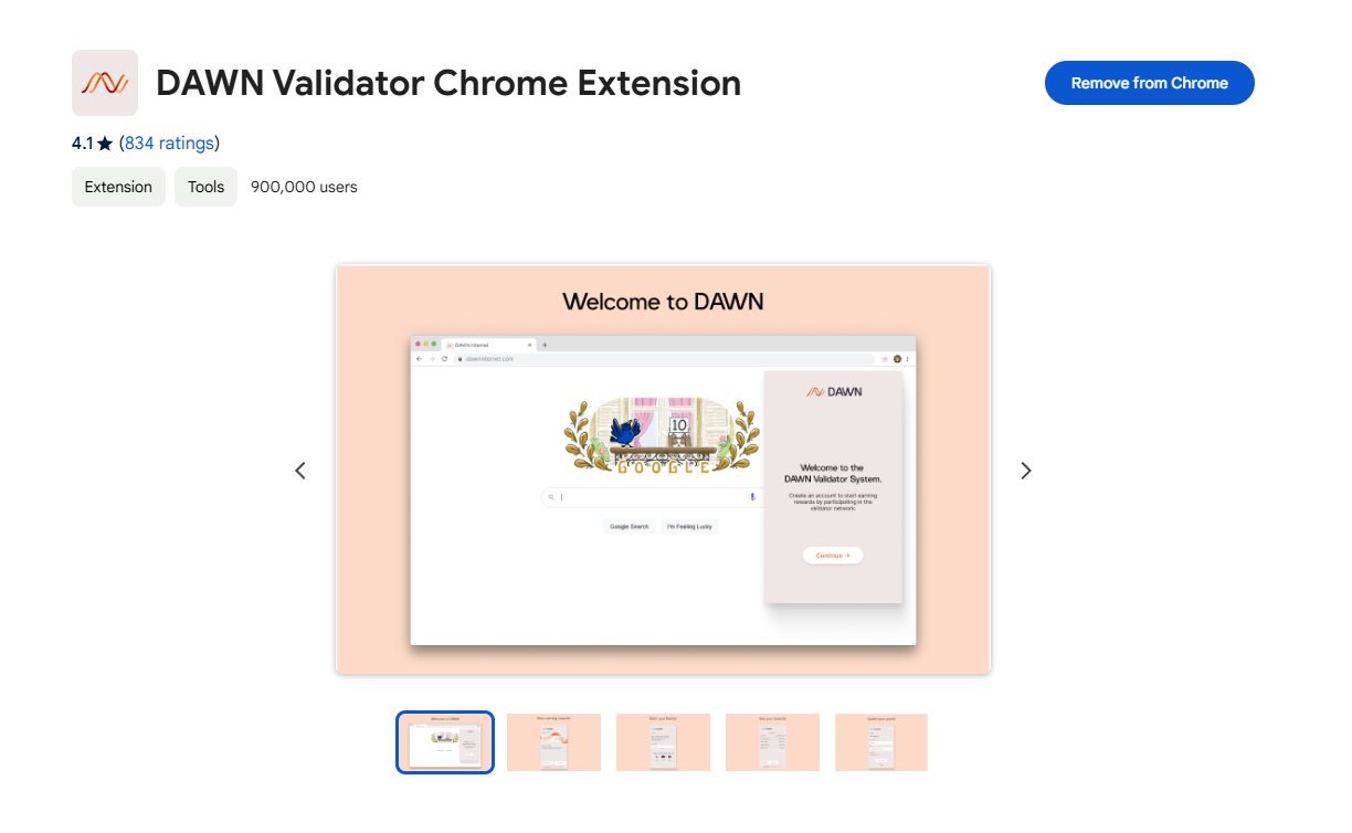 이제 DAWN 익스텐션 페이지로 넘어왔고
