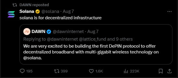 DAWN이 X에 쓴 멘션을 솔라나에서 리트윗,