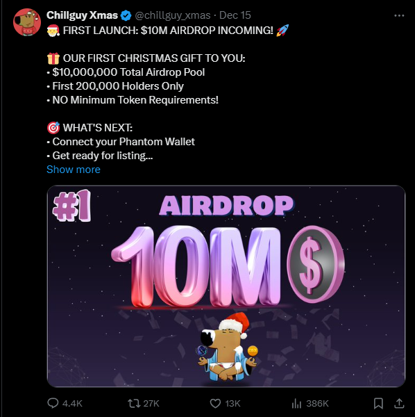 CGX (Chill Guy Xmas) 라는 밈코인입니다.