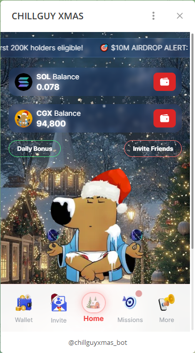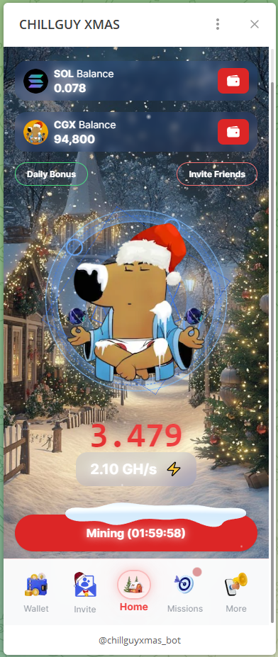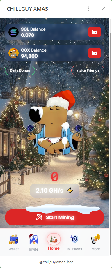Earn CGX and SOL rewards - Join the game now! 🎁 Updates: @chillguy_xmas X Twitter: x.com/chillguy_xmas