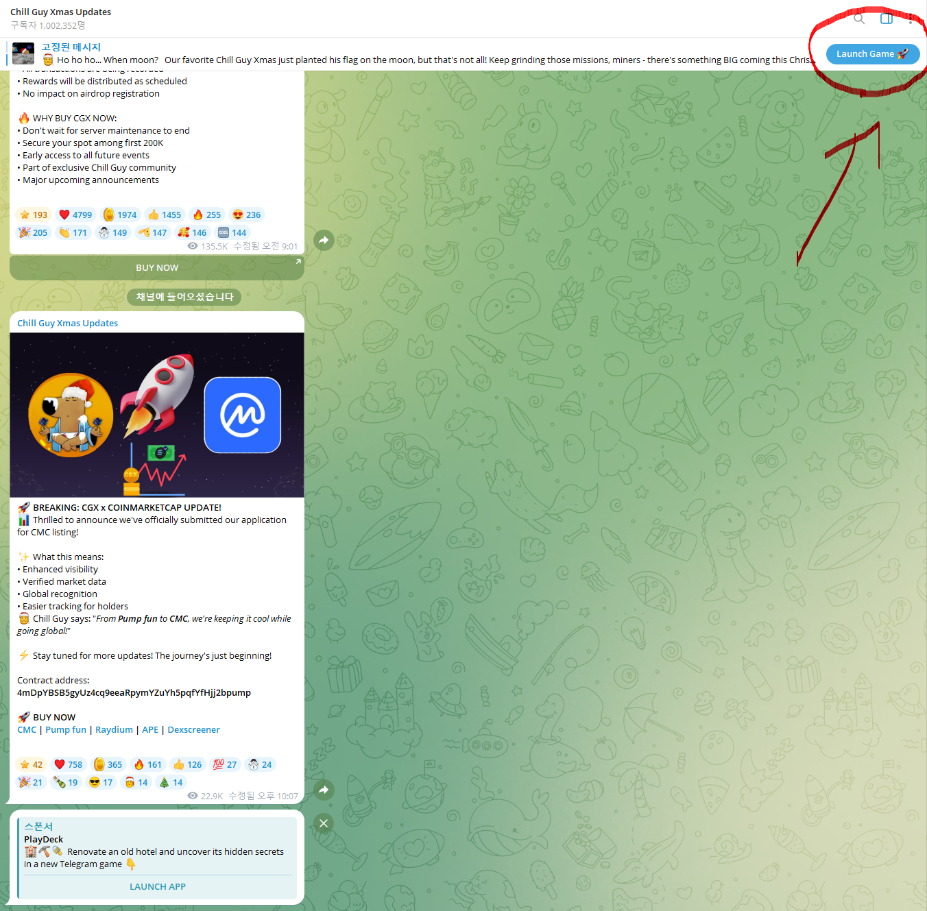 그럼 CGX 텔레그램 채널로 들어갑니다.